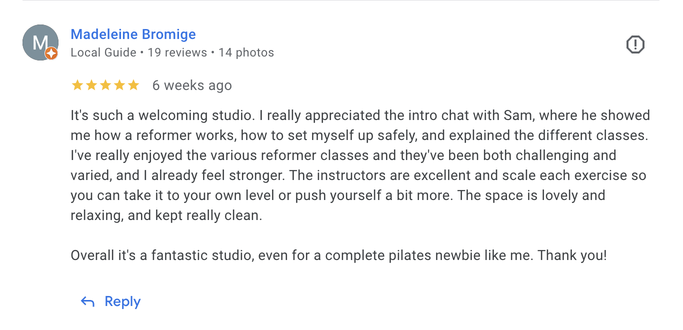 “The only place I will go for Pilates and reformer!!"